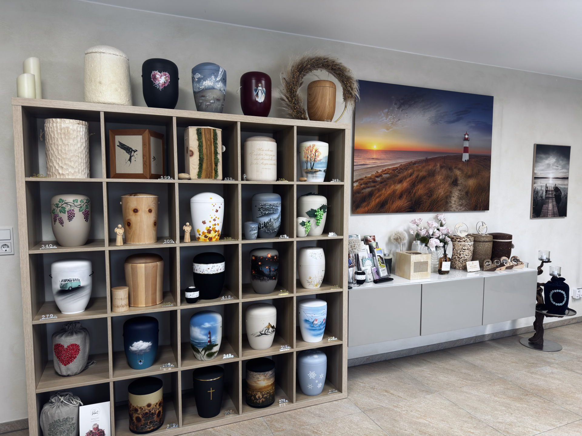 Der Sarg bzw. die Urne für die Beisetzung sollte dem Charakter des Verstorbenen entsprechen – schließlich begleiten sie ihn auf seinem letzten Weg und prägen maßgeblich die Atmosphäre beim Abschied. In unserer Ausstellung zeigen wir Ihnen eine große Auswahl an Särgen und Urnen in unterschiedlichen Stilen und Preisklassen. Gerne beraten wir Sie ausführlich bei Ihrer Entscheidung.